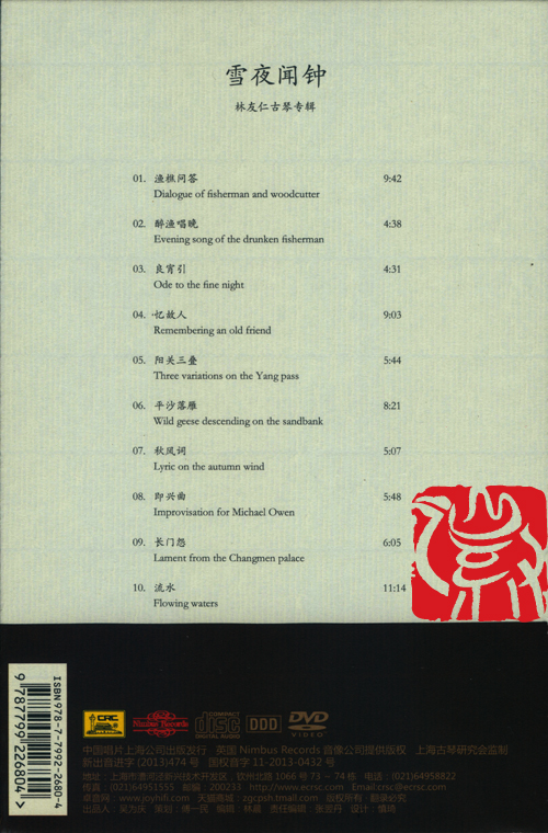 【中唱】《雪夜闻钟——林友仁古琴专辑》CD+DVD