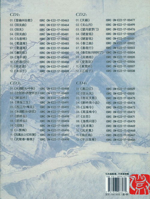 本专辑由若遗编著,附琴谱,含4张CD,共48首琴歌,由众多琴人演奏、演唱。