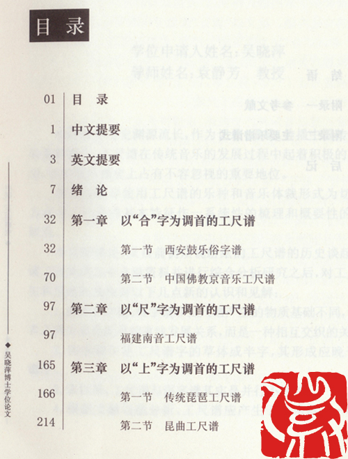主体部分,采用以实地考察为基础,结合文献考据的研究方法,探讨工尺谱和俗字谱的谱式特征,以及由此反映出的中国传统音乐深层次的文化内涵。