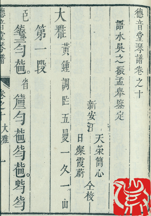 《德音堂琴谱》 (清康煕三十年,公元1691年)