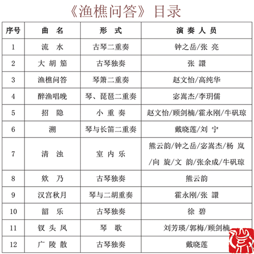 为庆祝上海音乐学院建立八十周年、民族音乐系建立五十周年,校方精心组织了一系列音乐会,渔樵问答——古琴重奏独奏作品音乐会即为其中之一。2007年6月,音乐会在上海成功举办。这是古琴历史上第一场真正意义上的重奏与独奏作品音乐会,在继承传统的基础上大胆创新,值得关注。