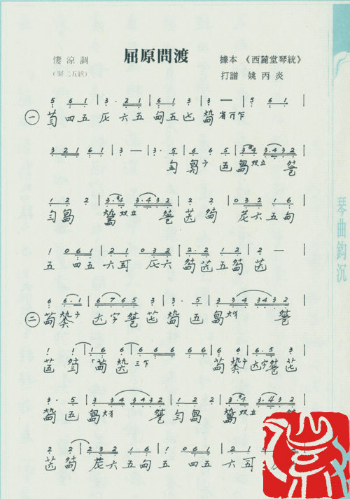 本书是已故著名琴家姚丙炎先生的打谱集。姚先生以擅长打谱闻名于世,《酒狂》一曲传遍琴界。本书共收录十曲:《酒狂》、《楚歌》、《华胥引》、《孤馆遇神》、《乌夜啼》、《小胡笳》、《古风操》、《屈原问渡》、《忘忧》、《秋宵步月》。每曲皆以减字谱、打谱后记、简谱为体例编排。另附姚先生操缦CD一张,其曲目与曲谱基本对应。