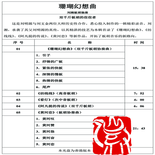 《珊瑚幻想曲》刘湘板胡独奏CD