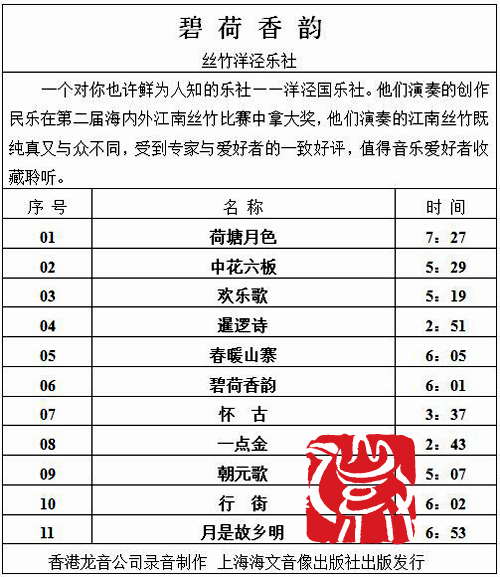 【龙音】《碧荷香韵》江南丝竹CD