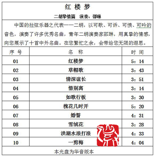 《轻舟随波-红楼梦》邵琳二胡独奏CD