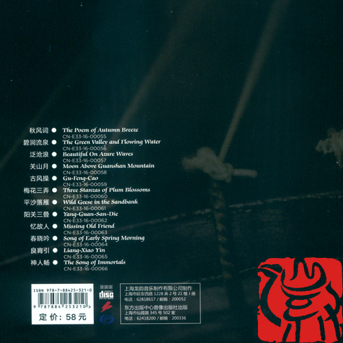 【编者按】本专辑2016年10月由龙韵公司制作。周成龙编配、龚一古琴演奏。作品包括秋风词、碧涧流泉、泛沧浪、关山月、古风操、梅花三弄、平沙落雁、阳关三叠、忆故人、春晓吟、良宵引、神人畅等12首琴曲。聆听这张唱片,可以感受到作者力图创新与突破的努力。