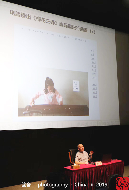 陈先生从机器人、古琴结构和特点、古琴记谱法、古琴谱的电脑输入谈起,着重了介绍“古琴机器人”等“古琴人工智能” 的设想,并演示了《古琴读谱奏乐显示》等有关基础软件。