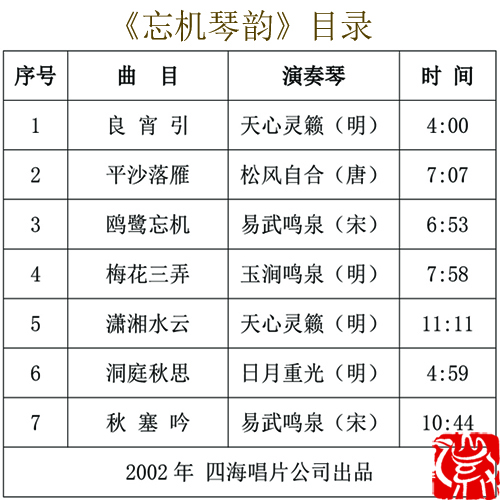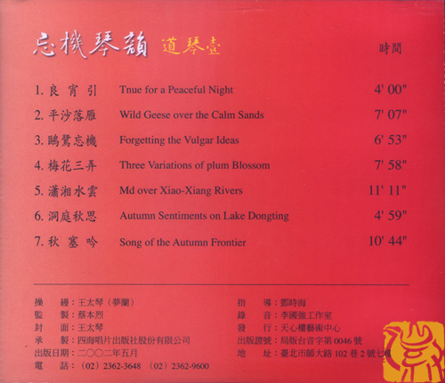【台湾】《忘机琴韵》CD