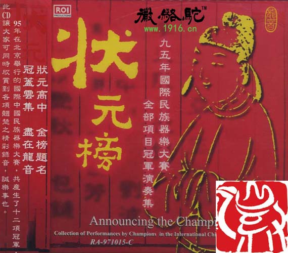 1995年在北京举行的中国民族器乐国际比赛,共产生十二项冠军。如今这些状元正活跃在我们的民族乐坛。这张CD可以让大家同时欣赏到他们当年的精彩录音。
